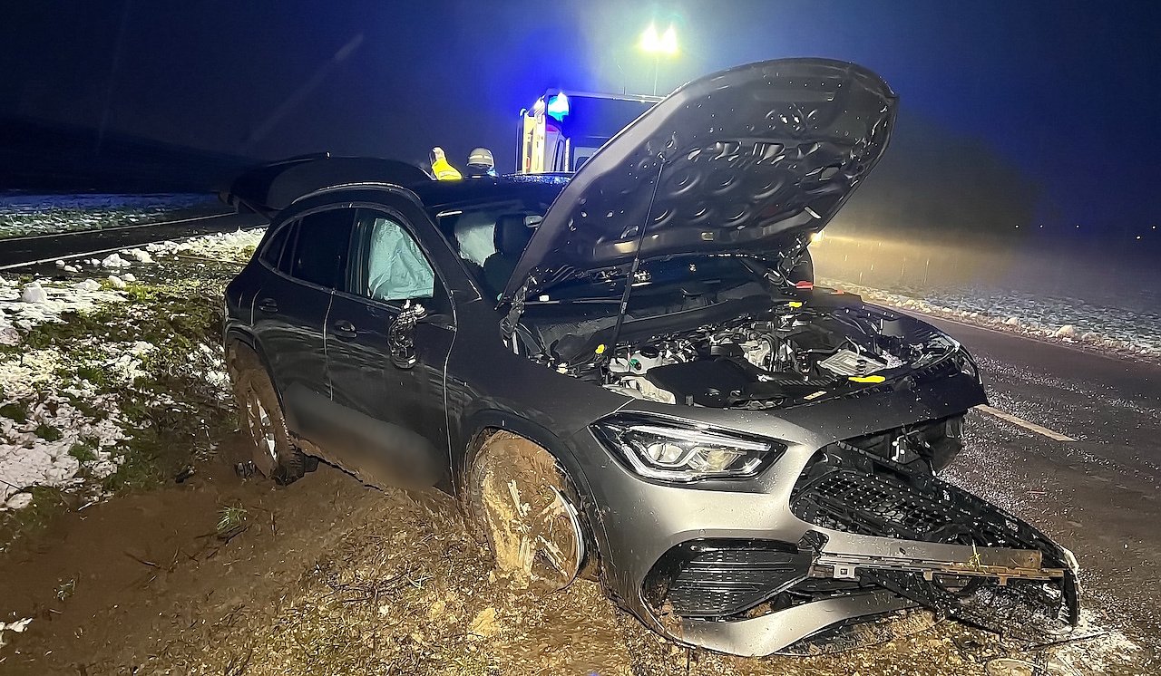 Dabei beschädigte er einen Leitpfosten sowie einen Richtungspfeil. Anschließend prallte er an einen Grabendurchlass und landete am anderen Ende am Straßenrand.