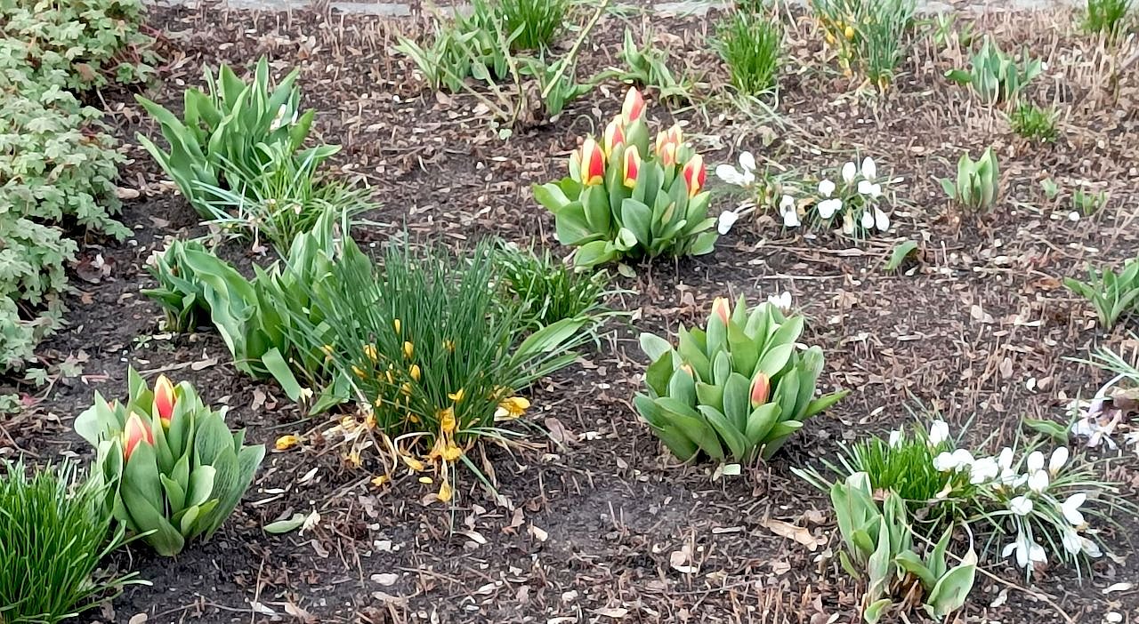 Bei einem Spaziergang in Sömmerda am gestrigen Samstag haben wir in einem Vorgarten neben anderen Frühblühern auch diese Tulpen gefunden.