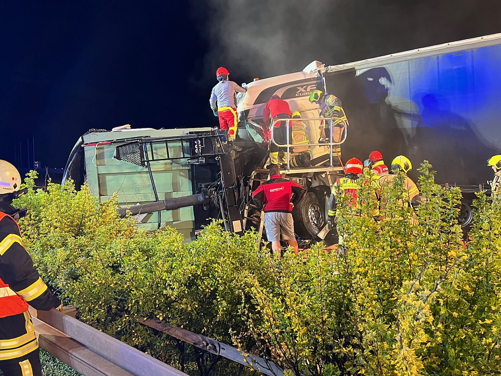 Ein dahinter fahrender 49-jähriger Pole konnte mit seinem Sattelzug nicht mehr ausweichen und fuhr in den liegenden LKW. Beide Fahrzeugführer wurden bei dem Unfall verletzt. Der Sachschaden beläuft sich nach ersten Schätzungen auf 250.000 EUR. Die Richtungsfahrbahn Göttingen ist seit dem Unfall voll gesperrt. Die Berge- und Reinigungsarbeiten werden noch mehrere Stunden andauern.