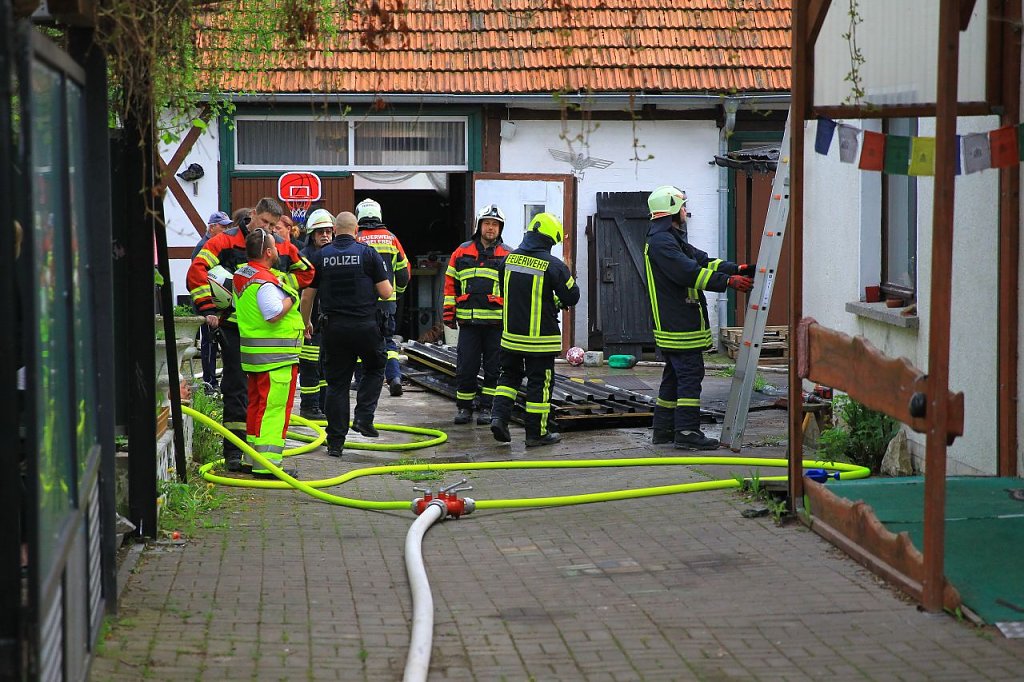 Dieser kippte nach Informationen der Einsatzkräfte um, das Benzin ergoss sich in dem Anbau und setzte im Anschluss die Decke in Brand. Der Dachstuhl des Anbaus brannte aus. Durch das schnelle Eingreifen der Einsatzkräfte konnte ein Übergreifen der Flammen auf das Hauptgebäude verhindert werden.
