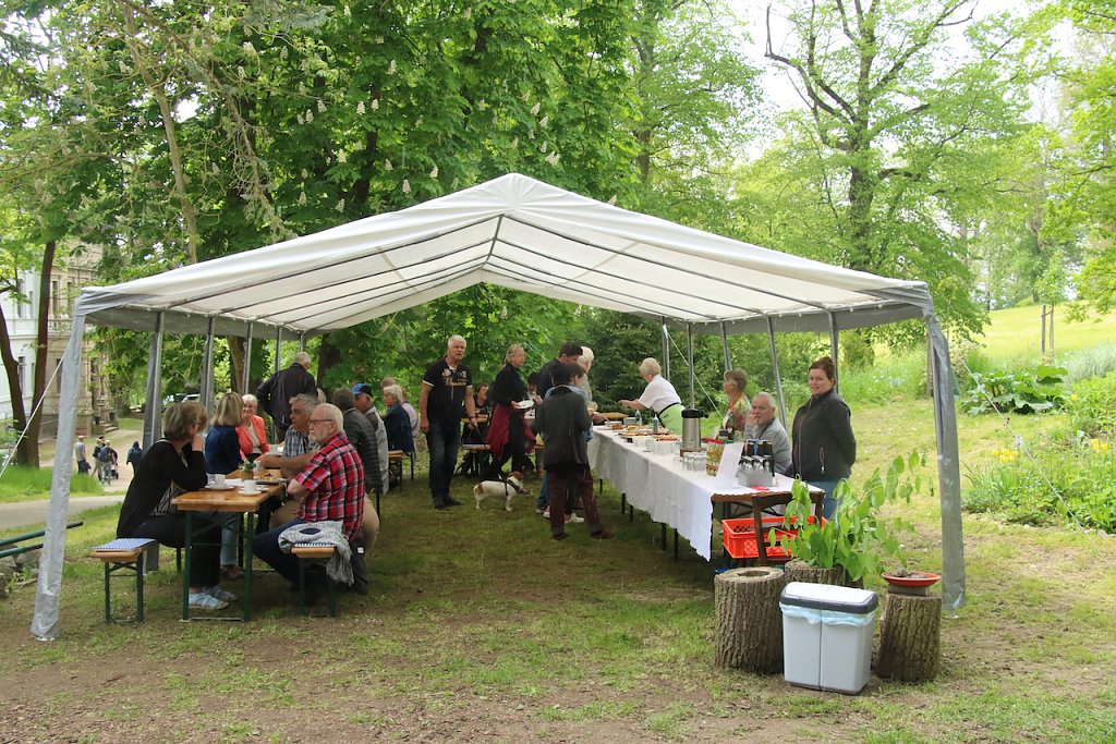 Nicht alle neue Pflanzen schaffen es, trotz intensiver Pflege. Die Trockenheit der letzten Jahre hat im Park manchen Baum das Leben gekostet. Auch das ein Grund, warum man den Regen heute eher gelassen sah. Dem Parkfest hat der keinen Abbruch getan, am Ende waren vom selbstgebackenen Kuchen nur Reste übrig und das ist in der Metrik Hohenrodes immer ein guter Indikator für das Gelingen einer Veranstaltung.