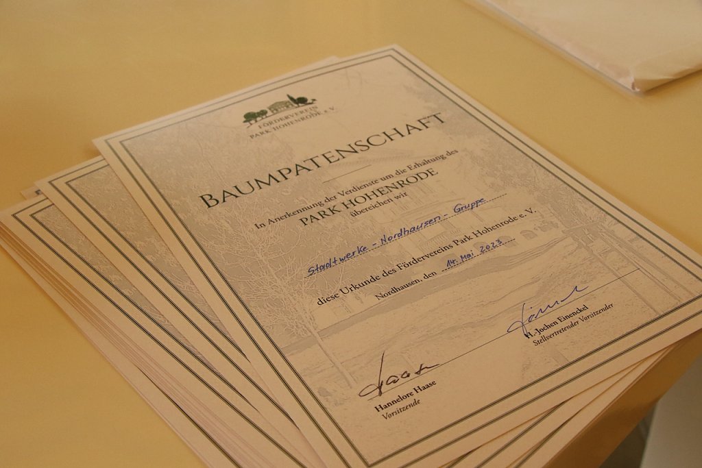 Wer selber mit dem Gedanken spielt "Baumpate" zu werden, der kann sich direkt beim Förderverein des Parks unter info@verein-parkhohenrode.de melden.