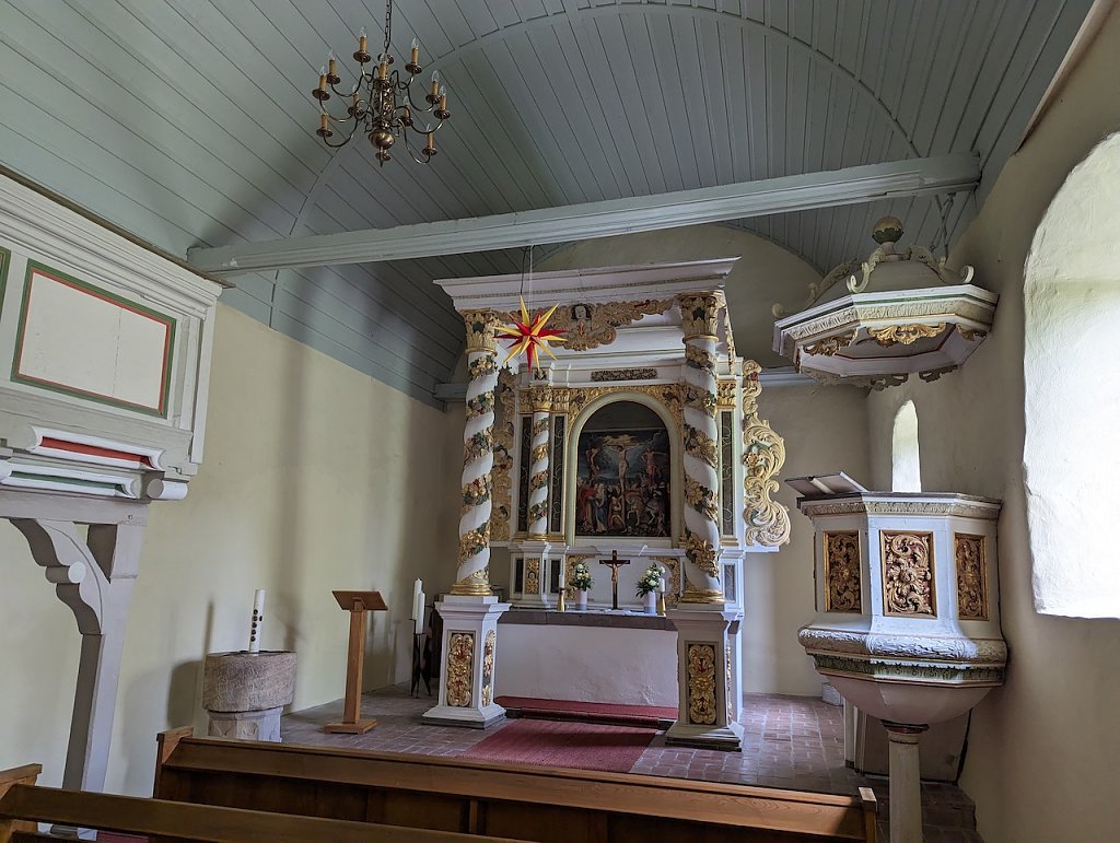 Gespeist wird dieser vom 1000 Jahre alten Bonifatiusborn, an dem der Heilige Bonifatius auf seinen missionarischen Reisen Taufen durchgeführt hat. In Großberndten steht unsere Kirche St.Petri-Pauli mit einem einmaligen Altar in direkter Nähe zum Kirchsee, wo man schöne Stunden verbringen.