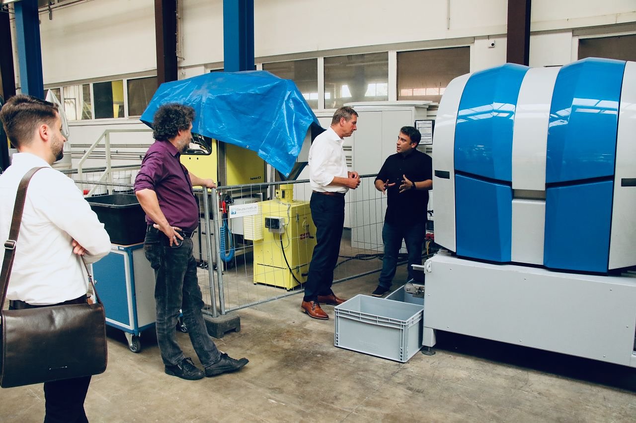 Im Vordergrund steht hier vor allem die Prozessoptimierung. Anders als üblich sind unsere Maschinen keine Blackbox in die man nicht hineinsehen kann. Wir wollen sehen, wie die Maschinen arbeiten, wo Potential für Optimierung besteht. Aber die Geräte sind so am Markt verfügbar und unsere Ergebnisse ließen sich entsprechend ohne großen Aufwand in der Wirtschaft umsetzen, erläuterte Samtleben. Da die Anlage mobil ist, könne man kleineren, lokalen Unternehmen perspektivisch die Nutzung der Technik anbieten um so die Finanzierung der Forschung Abseits der Fördermittel zu stützen.