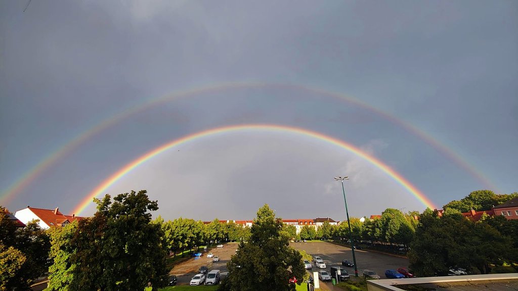 "Meinen Ausflug zum Hufhaus musste ich nach knapp einer halben Stunde wegen Gewitter abbrechen", schriebt Peter Blei, "dafür wurde ich in NDH mit einem Regenbogen belohnt." Und wir hier auch...