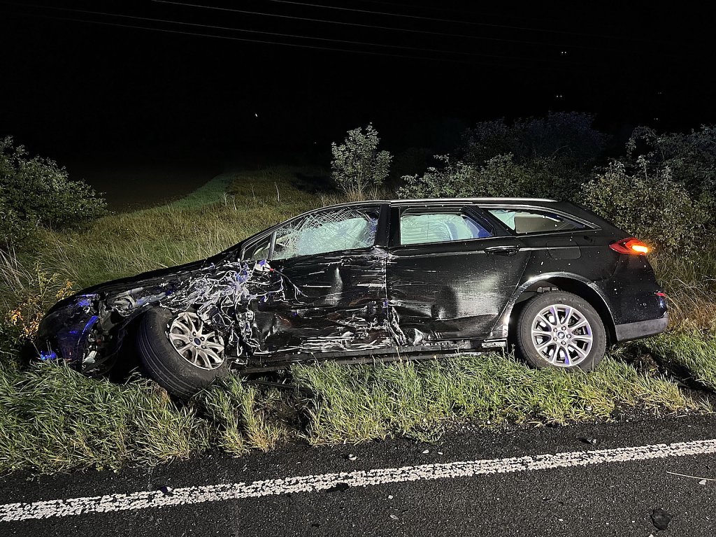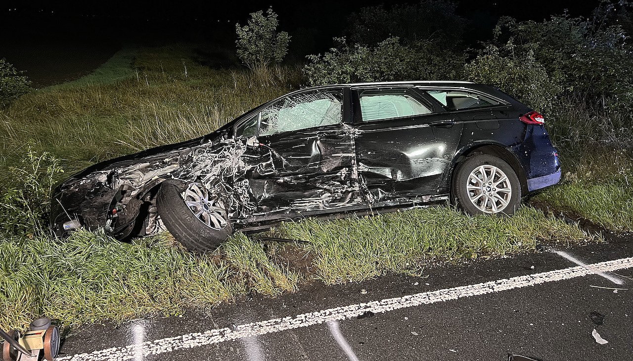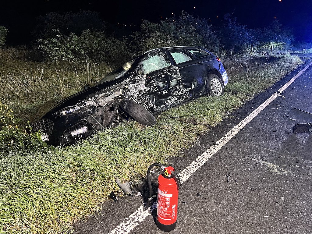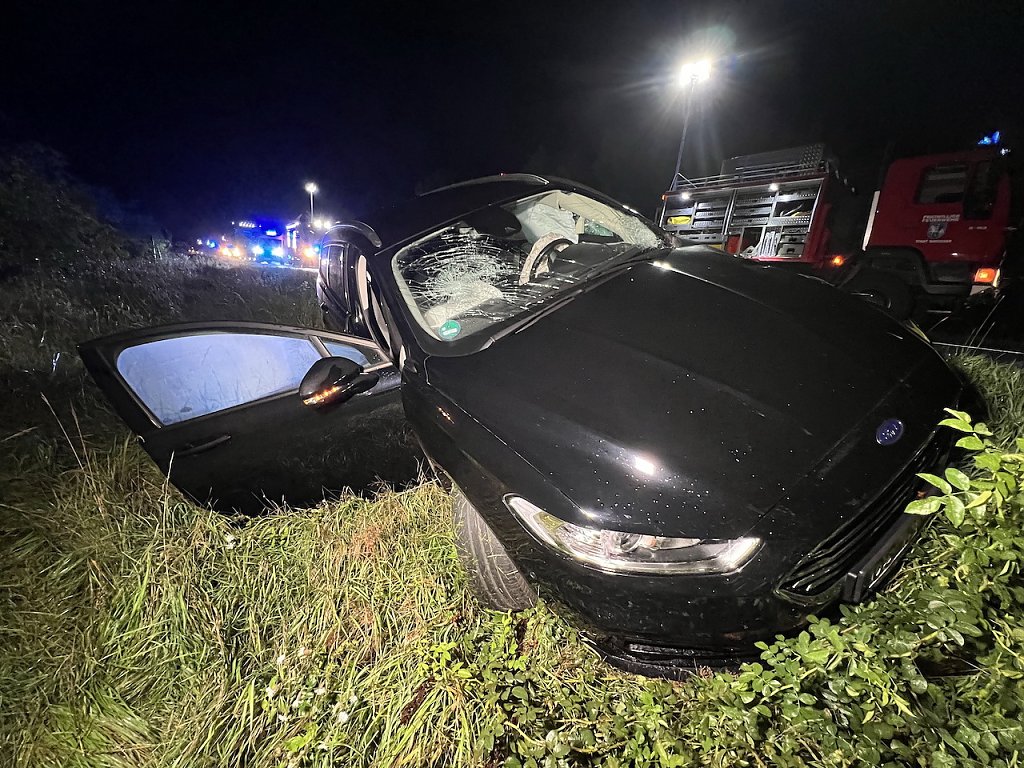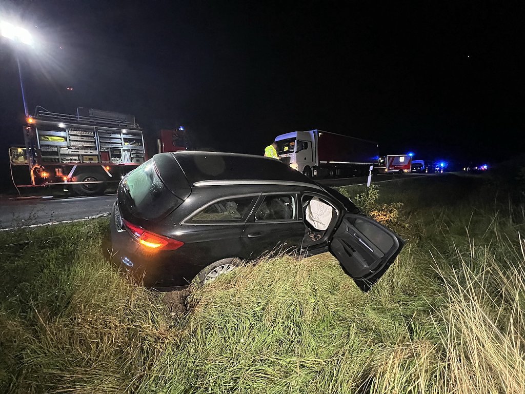 Dabei kollidierten die beiden PKWs. Der polnische Van, der mit sechs Personen besetzt war, kam von der Straße ab, prallte in eine Überfahrt und kam anschließend in einem Gebüsch zum Stehen. Der zweite PKW wurde von der Straße geschleudert und landete im Straßengraben. In diesem PKW befanden sich zwei Personen. Alle acht Personen wurden bei dem Verkehrsunfall verletzt, eine davon schwer. Sie wurde mit dem Rettungshubschrauber ausgeflogen.