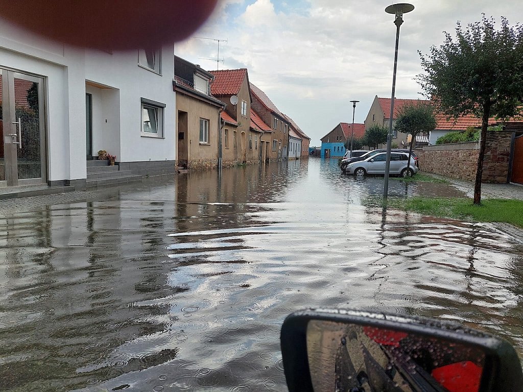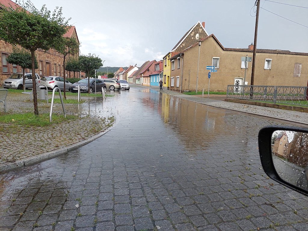Vollgelaufene Keller, überflutete Straßen und vor allem Schlamm auf den Straßen waren Ergebnisse des Starkregens. Das Unwetter zog weiter in Richtung Heldrungen, Oberheldrungen, Rossleben, Wiehe. Auch hier gingen ergiebige Regenmengen auf die Erde nieder. Über einhundert Einsatzkräfte waren damit beschäftigt, Gullis zu säubern, Bachdurchläufe freizulegen, überflutete Keller auszupumpen und Schlamm zu schaufeln.