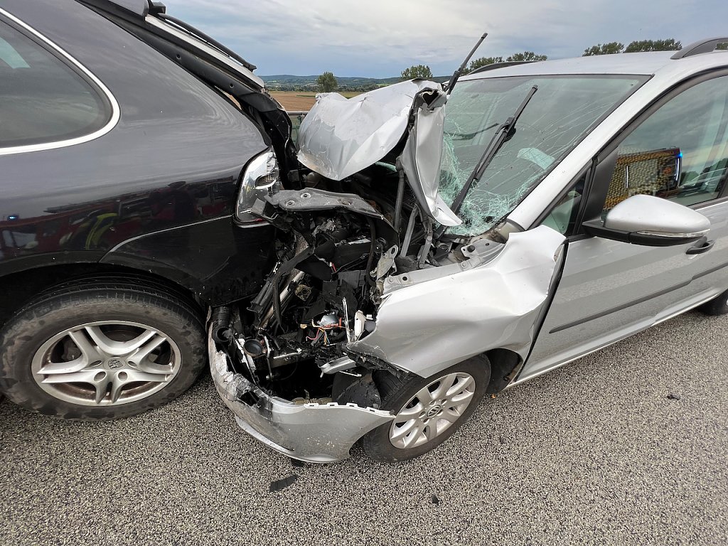 Der Aufprall war so heftig, dass sich der VW im Porsche verkeilte. Bei dem Unfall wurden vier Personen verletzt, eine davon schwer.