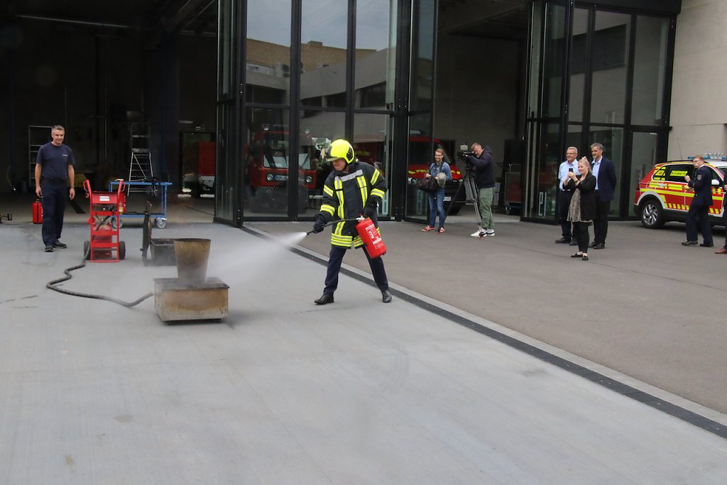 Was passiert wenn Wasser auf brennendes Speiseöl trifft, durfte der Minister selber ausprobieren (Foto: agl)