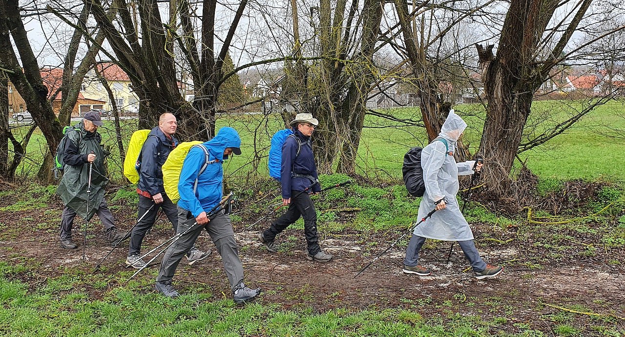 Wie hier, Anfang April 2023, geht es bei der Jubiläumstour 50. Südharz-Hunderter auch 2024 wieder von Bad Sachsa nach Sangerhausen über 100 Kilometer nonstop auf dem Karstwanderweg. 2023 regnete es fast während der gesamten Wanderung. Der 47. Südharz-Hunderter ging als Schlamm-Hunderter in die rund 20-jährige Geschichte der Veranstaltung ein. (Foto: Bodo Schwarzberg)