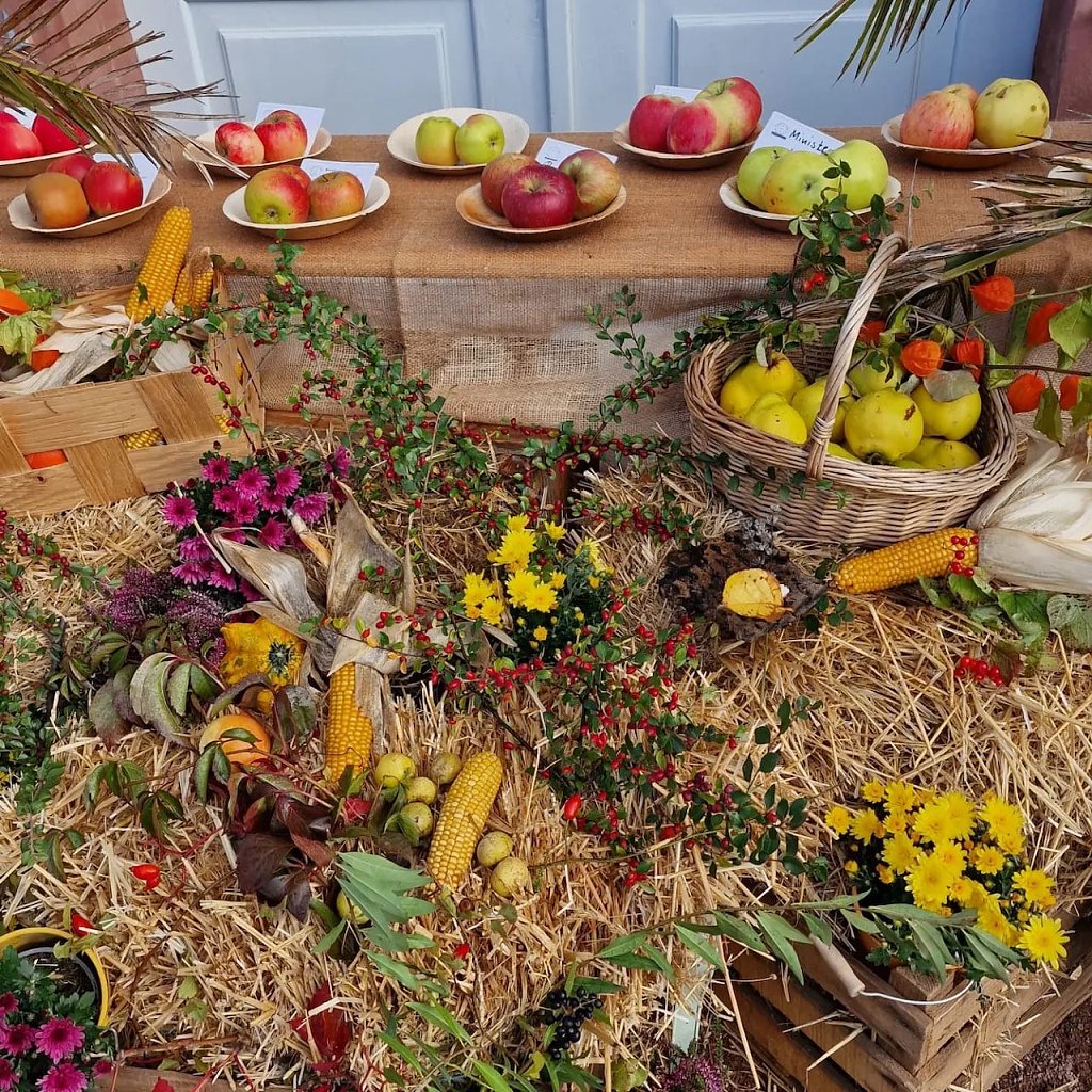 Apfelsämlinge sind aus Kernen entstandene neue Apfelsorten mit hohem genetischen Potential, wie hier zu sehen. Vor der Orangerie wartet ein kleiner Markt mit jede Menge Naturprodukten auf die Besucher, für deren leibliches Wohl hier auch gut gesorgt wird. Die Kyffhäuser Obstfreunde und die Thüringer Landesgruppe des Pomologenvereins freuen sich an diesem Tag auf Ihren Besuch.