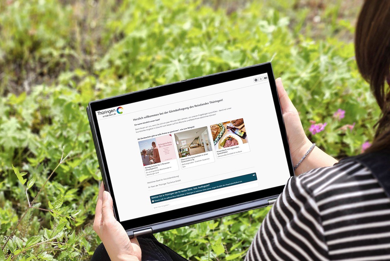Seit dem 1. Mai und bis 31. Mai 2024 steht die Struktur und Vielfalt der Thüringer Gäste im Mittelpunkt einer Befragung. In Zusammenarbeit mit den touristischen Destinationen soll ein tieferes Verständnis für das Reise- und Buchungsverhalten der Gäste entwickelt werden. Die Befragung wird zudem die Zufriedenheit der Gäste während ihres Aufenthalts in Thüringen sowie ihre zukünftigen Erwartungen erfassen.