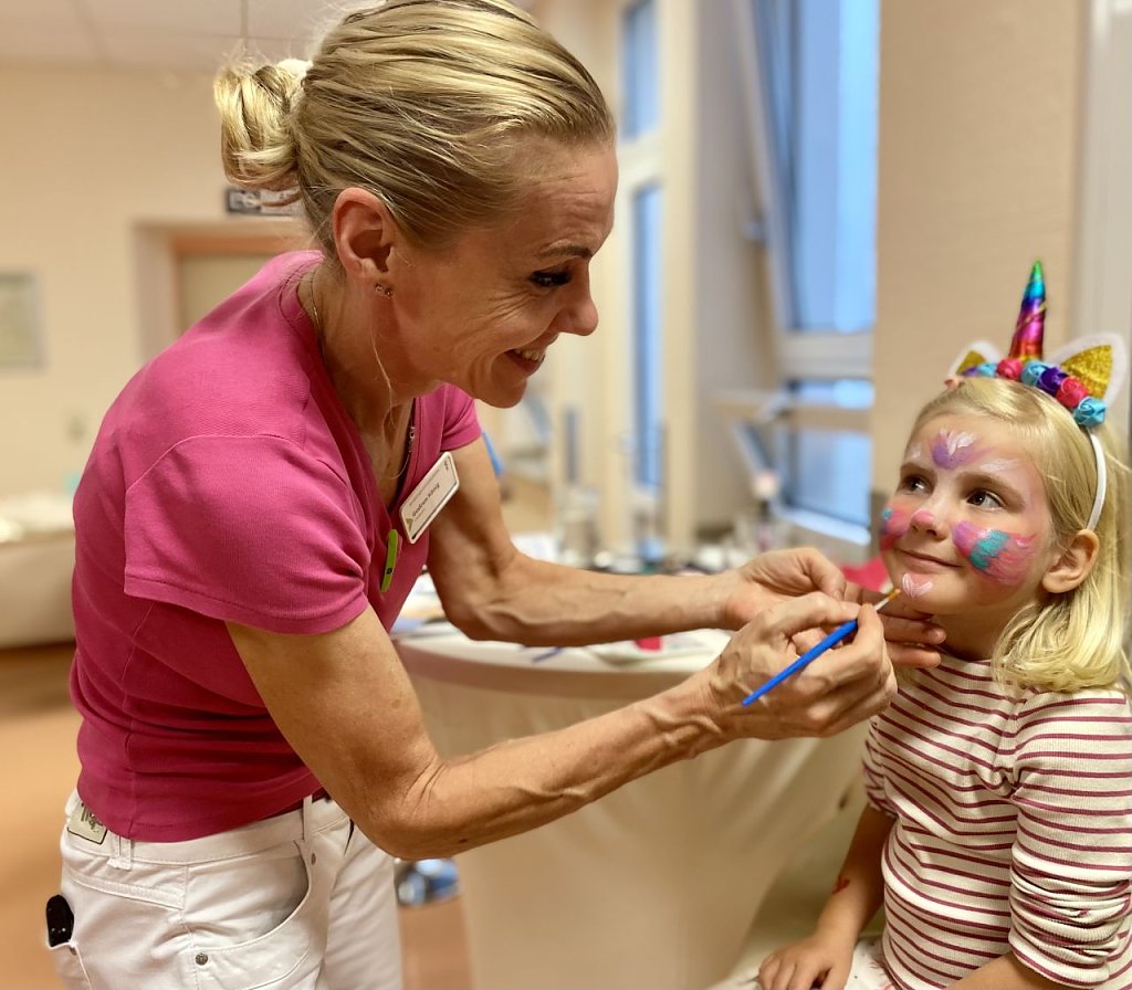 Auch die Chefärztin Gudrun König stand für Gespräche zur Verfügung, ganz nebenbei sorgte sie für beste Stimmung unter den kleinen Besucher*innen und übernahm die Kinderschminkstation. Das Team der neonatologischen Intensivstation klärte alle Fragen über die Versorgung von Frühgeborenen. Alles in allem ein gelungener Nachmittag, an dem unzählige Fragen beantwortet wurden. Für diejenigen, die diesen Termin nicht wahrnehmen konnten, steht das Team der Geburtsklinik unter 03606 76-2260 oder unter anderem am Infoabend der Geburtsklinik am 18.10.2023 um 18:00 Uhr wieder zur Verfügung.