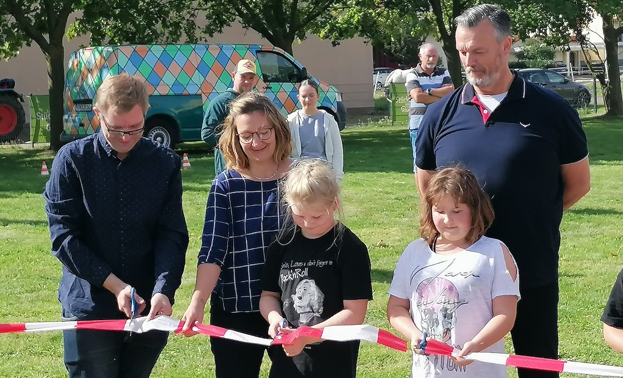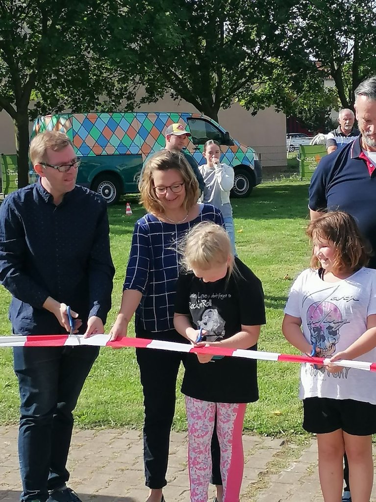 Eröffnung des inklusiven Spielplatzes heute in Heringen durch die Kinder mit feierlichem Banddurchschnitt (Foto: C.Schröder)