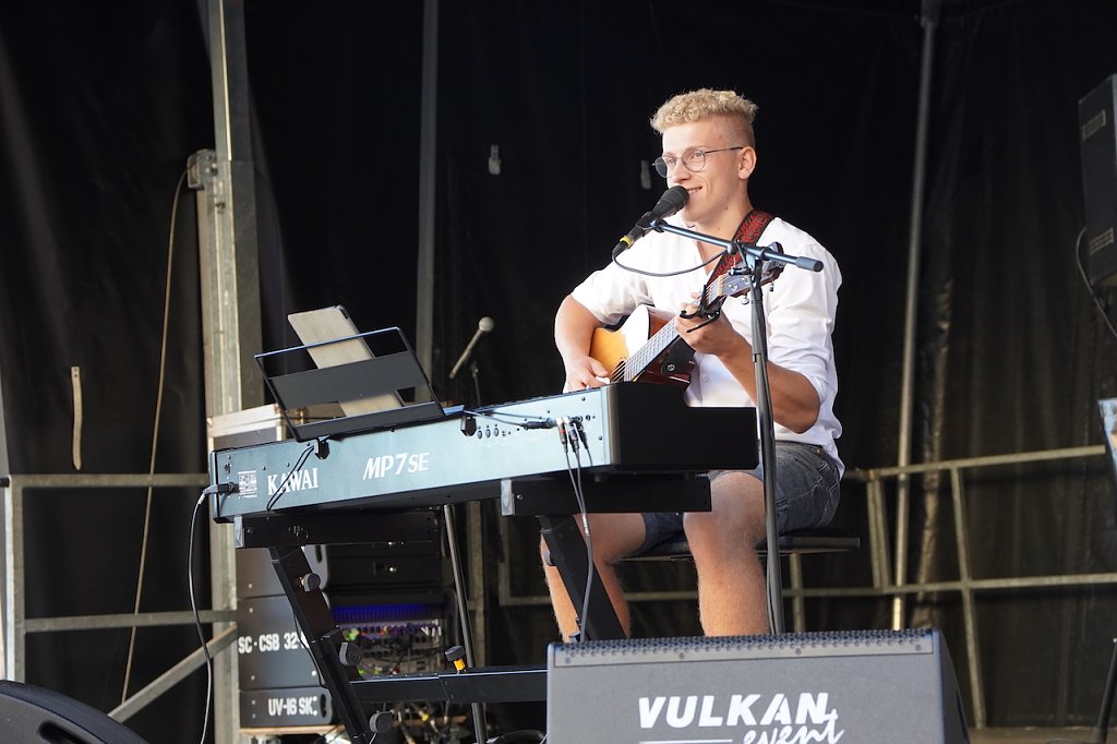 Der Auftritt von Tammo Förster, dem Gewinner der Fernsehsendung The Voice of Germany, sorgte im Schlosshof mit coverten bekannten Songs zu Gänsehautmomenten. Neben der Bühne vollendete er eine tolle Bilanz für den VKS - Verein für Knochenmark- und Stammzellspenden: nach 25 neu registrierten potenziellen Stammzellen- und Knochenmarksspendern, nahm auch er an der Typisierungsaktion teil.