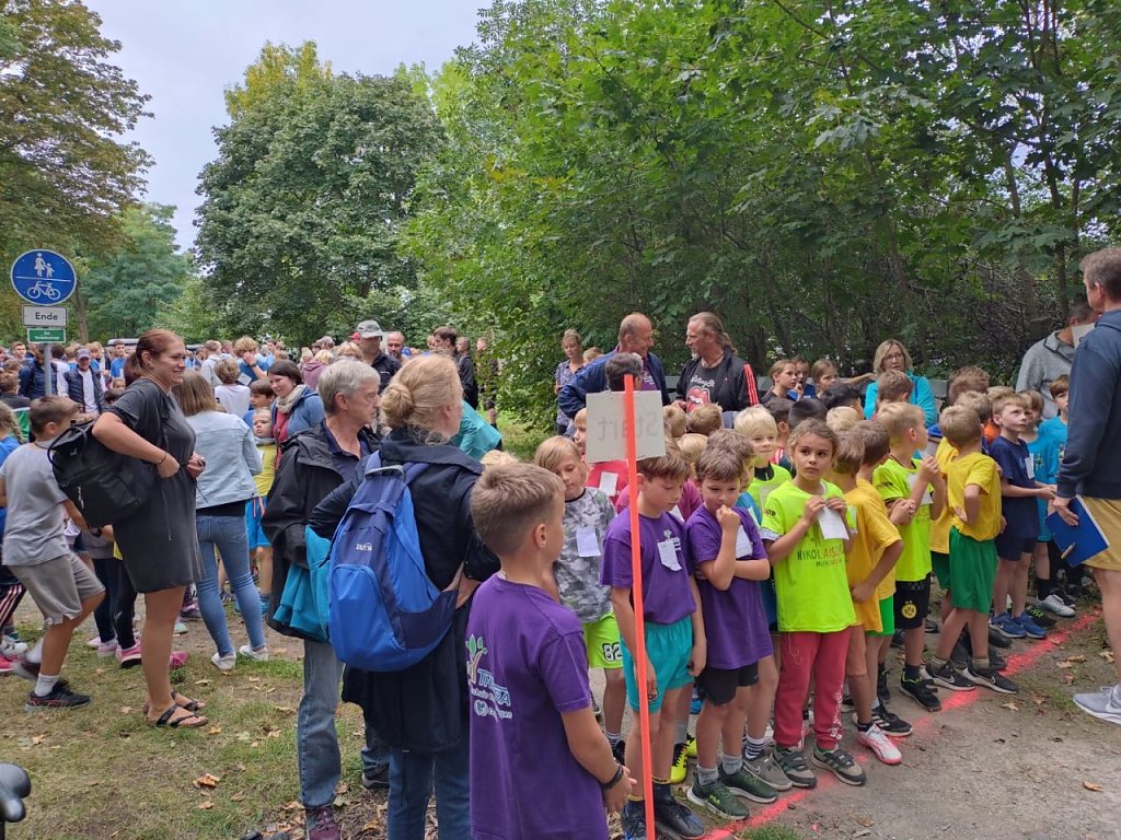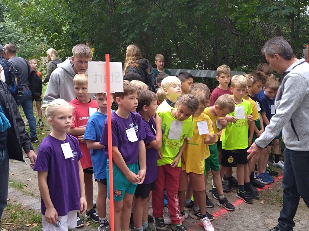 Vorher gab es noch eine bunte Erwärmung mit viel Bewegung, welche Lauf-Ass Marcel Krieghoff anleitete. Der mehrfache Gewinner zahlreicher Volksläufe und Mitglied der Deutschen Berglaufnationalmannschaft fungierte anschließend als Starter für die Kinder und Jugendlichen in den jeweiligen Wettkampfklassen.