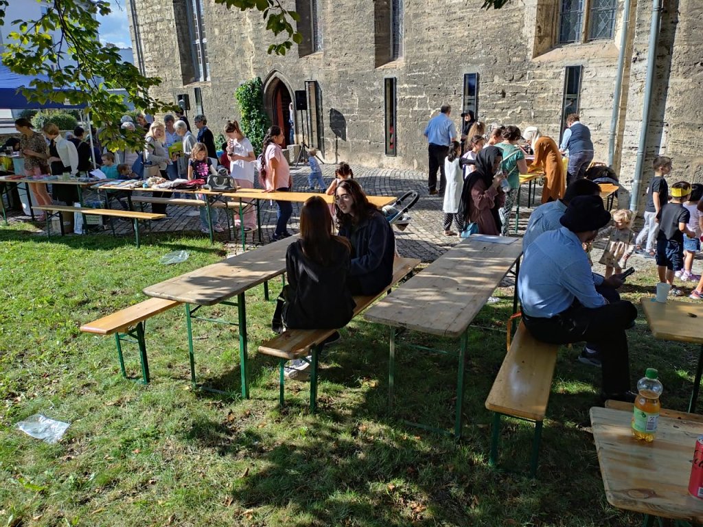 Der Nachmittag in der Jugendkirche gestaltete sich bei Kaffee, Kuchen und internationalen Speisen sehr kurzweilig und unterhaltsam. Es wurde gesungen, getanzt und gelacht, wobei auch traditionelle Festkleidung aus den verschiedenen Herkunftsländern getragen und präsentiert wurde. Dadurch konnten die ca. 200 Anwesenden für ein paar Stunden die Sorgen des Alltags oder das Leid in ihrer Heimat ausblenden.