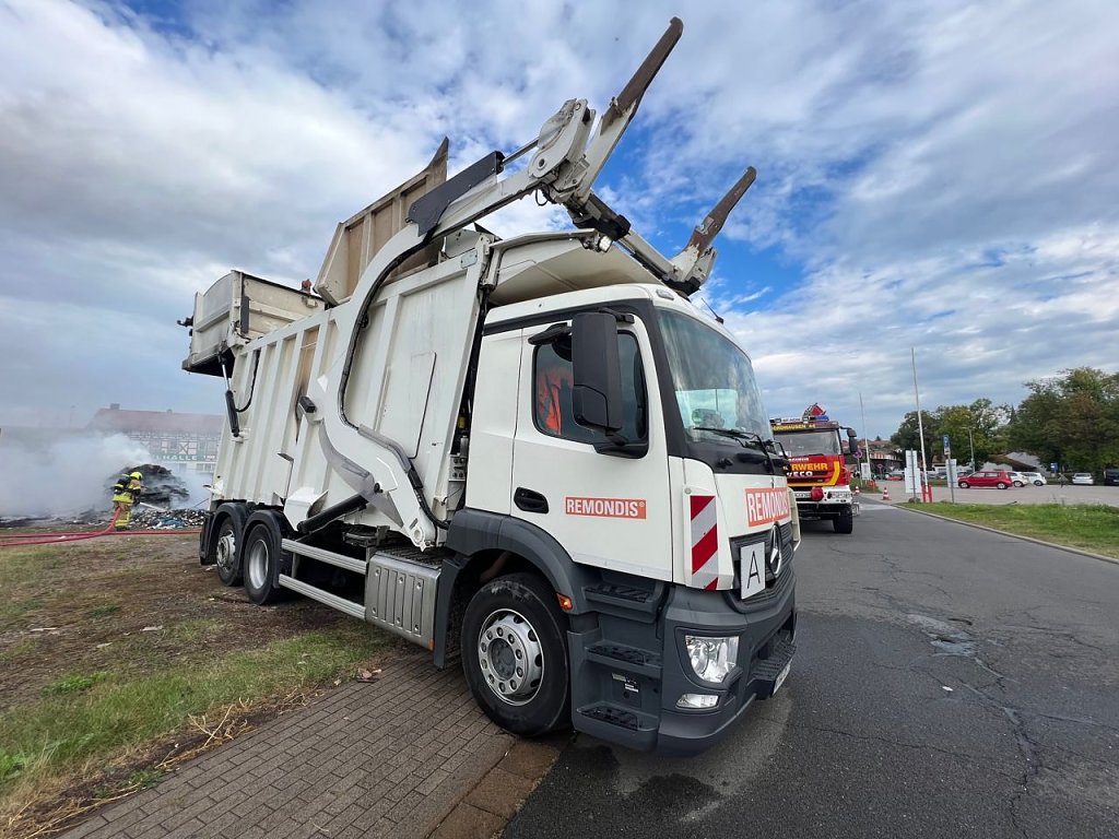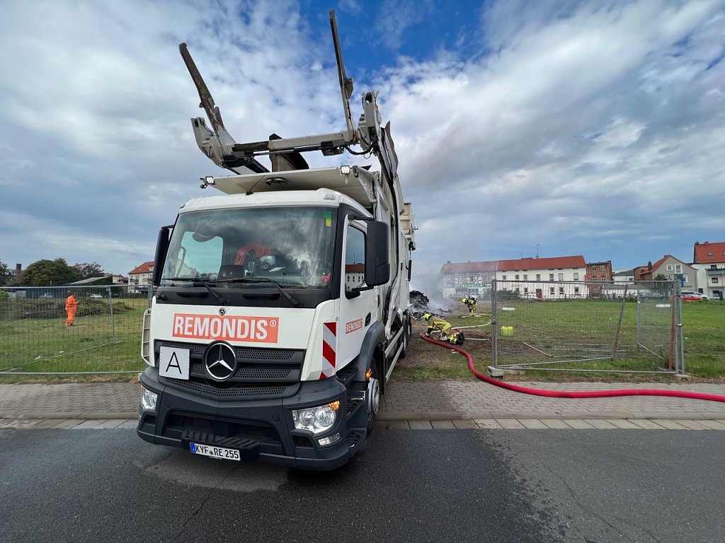 Wie vor Ort zu erfahren war, habe der Fahrer des Fahrzeuges der Firma Remondis die Rauchentwicklung im Sammelbehälter bemerkt und zügig reagiert. Auf der Suche nach einer geeigneten Abladefläche nutzte der Fahrer die Brache gegenüber des Parkplatzes an der Bruno-Kunze Straße. Die Feuerwehr konnte den brennenden Müllhaufen hier problemlos löschen. Die genaue Brandursache ist unklar, zur Zeit wird der Haufen entfernt um ihn seiner eigentlichen Bestimmung zuzuführen.