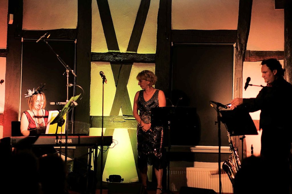 Mit Klassikern wie Dream a little Dream of me", Ich bin die fesche Lola, In einer kleinen Konditorei", Irgendwo auf der Welt, Es ist nur die Liebe brachten sie die Besucher dieser Veranstaltung schnell auf ihre Seite.