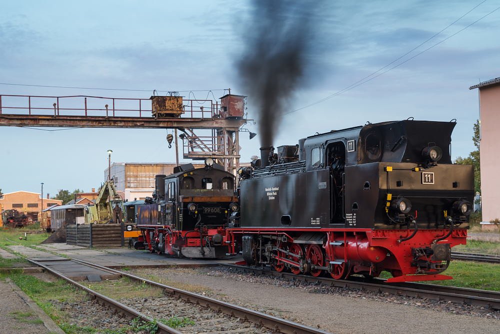 Lok Nr 11 wurde vorübergehend neben der kalten Lok 10, vor dem Schuppen abgestellt. Ein tolles Fotomotiv. Mit dem nächsten Zug folgte die Gastlok 99 1608. Auch diese posierte kurz für die zahlreichen Fotofreunde neben den 2 anderen Fahrzeugen. Zurück ging es wieder mit der Lok Nr. 11. Auch gab es im Anschluss genügend Möglichkeiten die bekannte Wipperliese für eine Tour durch das romantische Wippertal zu nutzen. Desweiteren gab es Anschlussmöglichkeiten zur Parkeisenbahn Vatterode.