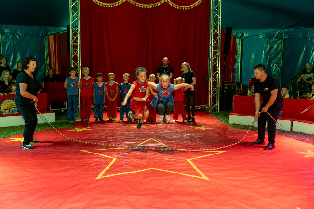 Doch der Höhepunkt des Zirkusprojekts war zweifellos die Vorstellung am Freitag, die für die Eltern der Teilnehmer und die gesamte Gemeinde offen war. Die Nachfrage war so groß, dass die Veranstaltung mit stolzen 250 Zuschauern restlos ausverkauft war. Es war eine wahre Freude zu sehen, wie das Publikum den atemberaubenden Darbietungen folgte.