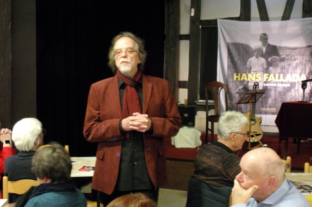 Und wer das alles in Texten aufgehen lässt, ist Hilmar Eichhorn, weithin bekannter und populärer Film- und Theaterschauspieler und Regisseur – aus Dresden stammend. Was wunder, dass bei den Zuhörern mitunter der Eindruck entsteht, Hans Fallada ist an diesem Abend selbst anwesend. Er (Eichhorn) gestikuliert, verstellt seine Stimme, mitunter meint man, Kinderstimmen zu hören. Es ist eine wahre Freude, ihm dabei zuzuschauen, zuzuhören.