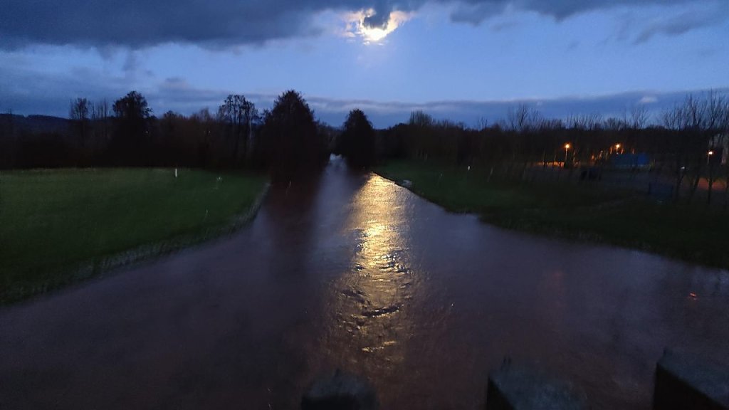 Es traf den kleinen Ort nach dem Stausee, Thürungen. Da der Stausee voll war, wurden das Ablassen von Wasser eingeleitet. Es wird natürlich die Orte treffen, die östlich von Stausees sind.