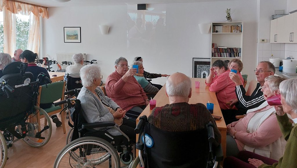 Am Vormittag wurde gemeinsam mit unseren Heimbewohnerinnen und Heimbewohnern gefeiert. Bei einer Bowle wurden alte Bilder, vom Bau des Hauses bis heute gezeigt und angeschaut. Dabei konnten alle wunderbar in Ihren Erinnerungen schwelgen.