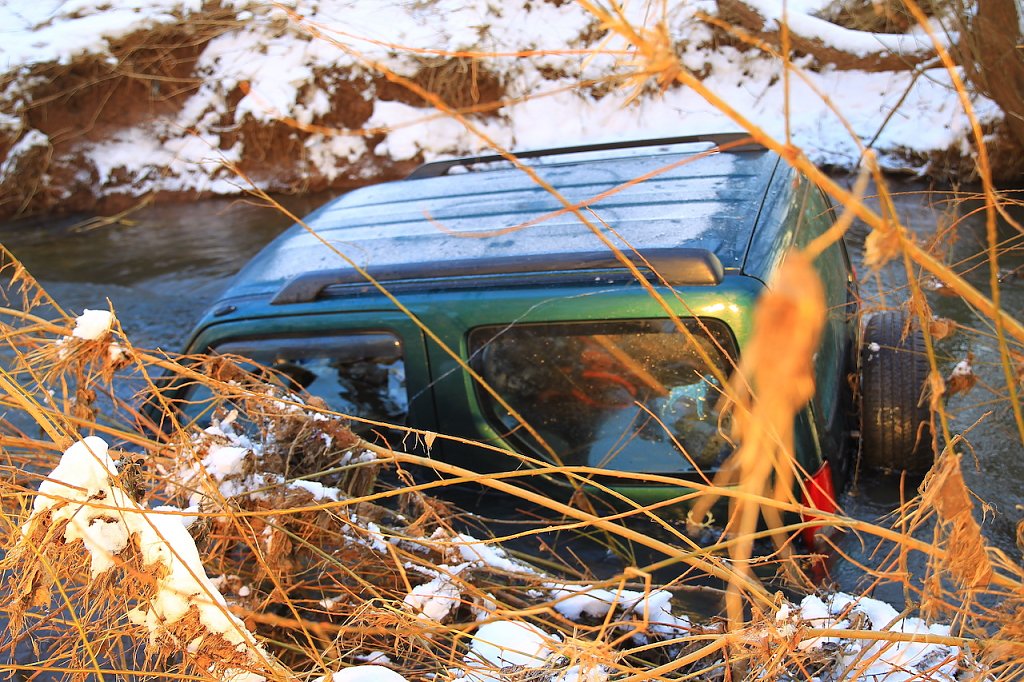 Ein 89-jähriger Jäger war mit seinem Suzuki Jimny auf unbefestigtem Untergrund unterwegs, als er auf dem schneebedecktem Boden plötzlich ins Rutschen kam und mit seinem Auto den Hang hinab und in den Fluß stürzte. Das Fahrzeug versank sofort zur Hälfte im Wasser. Der Rentner konnte zwar das Auto mit Müh und Not selber verlassen, doch gegen die Fluten kam er nicht an.