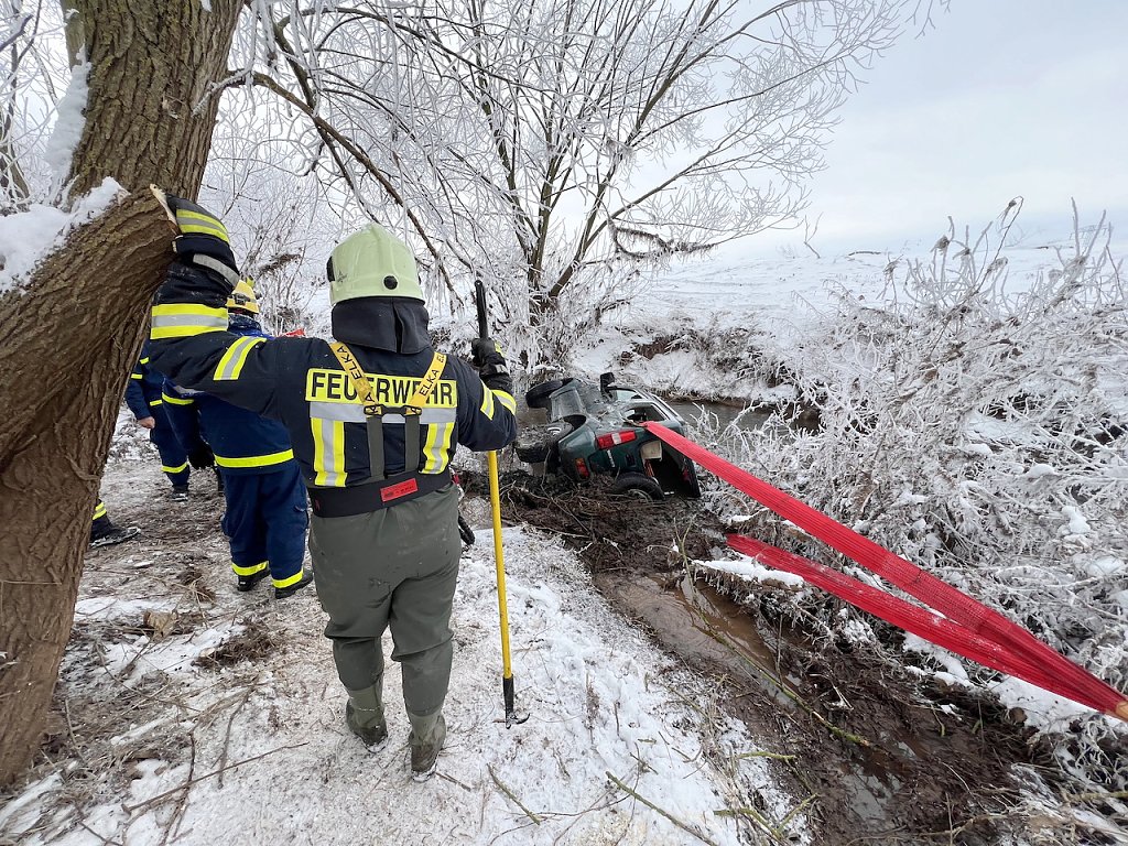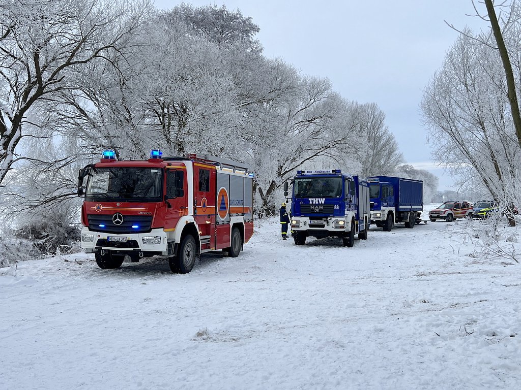 Die klirrende Kälte bei Temperaturen um die Minus 12° Celsius stellte Mensch und Material vor eine Herausforderung. Durch den gestrigen Einsatz war der Bereich teilweise spiegelglatt, so dass auch hier beim Begehen des Einsatzortes erhöhte Aufmerksamkeit erforderlich war.