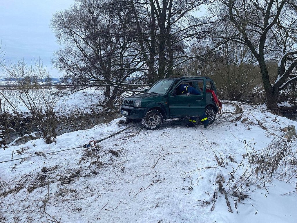 Bevor mit der Bergung des Fahrzeuges aus der Helme begonnen werden konnte, mussten Fahrzeuge, Gelände und die Vegetation vorbereitet werden. Mehrere Büsche, Sträucher und kleinere Bäume mussten gefällt werden, auf die Einsatzfahrzeuge wurden Schneeketten aufgezogen. Erst dann konnten die Einsatzfahrzeug in die richtige Position gebracht werden. Mehrere Stahlseile, Umlenkrollen, Schäkel und Rundschlingen wurden benötigt, um das in die Helme gestürzte Fahrzeug zu bergen.