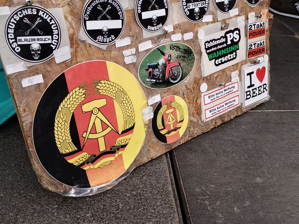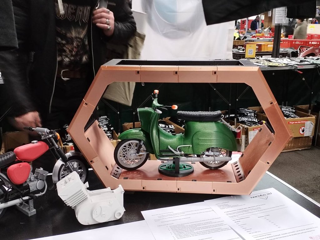 Steffen ist an diesem Wochenende einer der knapp 300 Aussteller, die zahlreiche Ersatzteile für das Zweirad und das Automobil im Angebot haben. Er hat seinen Stand auf dem Freigelände vor den Messehallen aufgebaut und berichtet von der Veranstaltung. Er wirkt ein wenig unzufrieden: Es lief von der Organisation her in diesem Jahr nicht alles so glatt, wie wir das in den vergangenen Jahren kannten, berichtet der Händler. Das könne mit dem Veranstalterwechsel zusammenhängen, den es gab. Schon die Anfahrt war mit Hindernissen verbunden: Am Freitag war Anreisetag. Wir Händler mussten stundenlang an einer Kasse anstehen, um unsere Zugangsberechtigung zu erhalten, obwohl wir doch schon im Vorfeld unsere Standgebühren entrichtet hatten. Das kostete natürlich Zeit, die für den Aufbau des Standes hätte verwendet werden können.