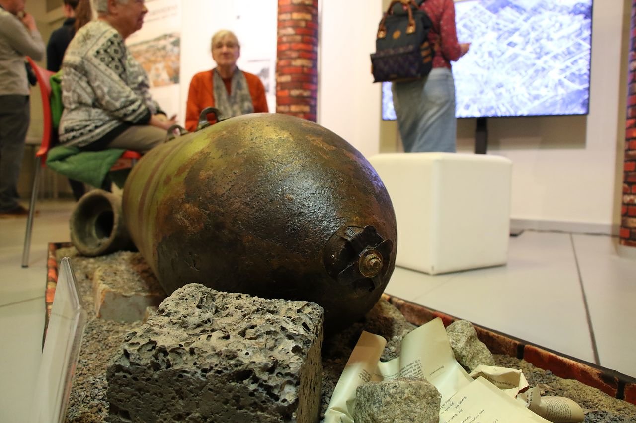 Die Ausstellung ist nicht nur reich bebildert sondern wird auch durch diverse Leihgaben wie diesen Blindgänger bereichert, den man am Theater gefunden hat (Foto: agl)
