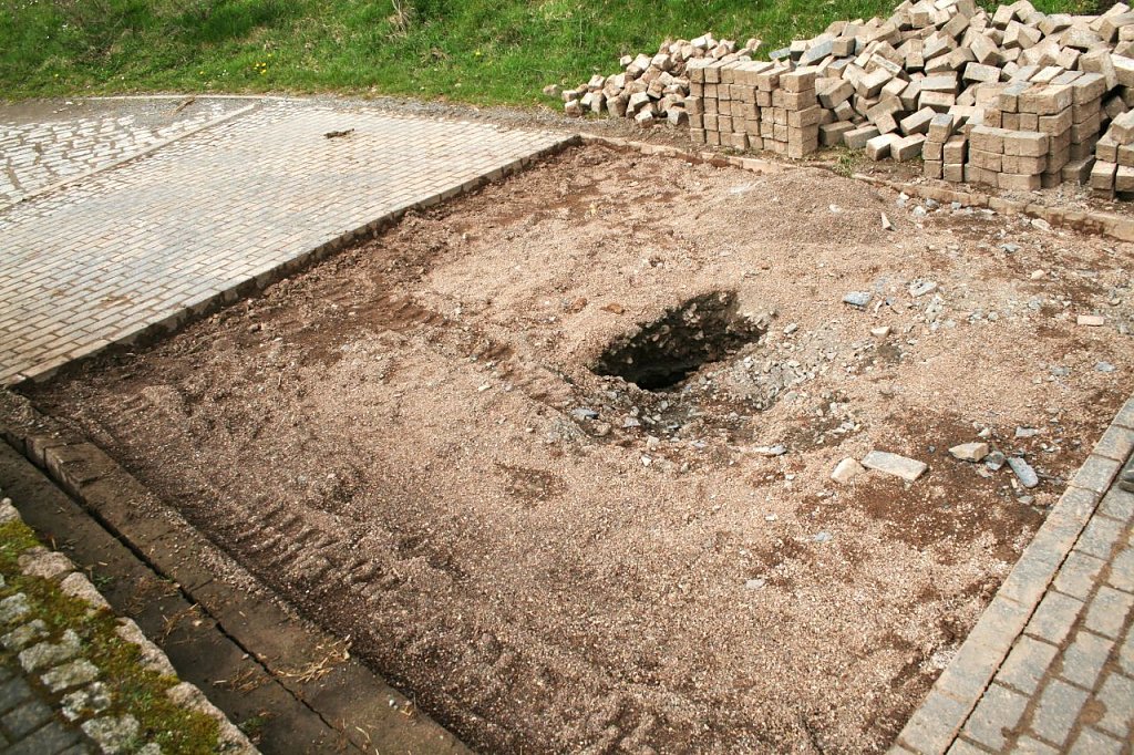 Ein aufmerksamer Bürger informierte darauf hin die zuständige Behörde und die betroffene Stelle wurde gesperrt. Man entfernte das Pflaster und baggerte 4 Meter tief aus.