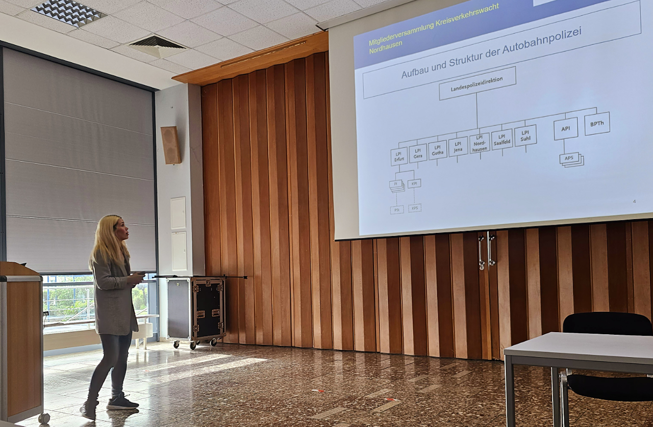 Des Weiteren erhielten die anwesenden Mitglieder*innen durch den stellvertretender Leiter Ermittlungsdienst, Herrn Graefe, einen Überblick über das Unfallgeschehen 2023 im Stadtgebiet und Landkreis Nordhausen, welcher durch die stellvertretende Dienststellenleiterin der Autobahnpolizei Abteilung Nord, Frau Sonnabend mit einem Überblick über die Historie und Struktur der Autobahnpolizei sowie die Unfallstatistik im Landkreis Nordhausen abgerundet wurde.