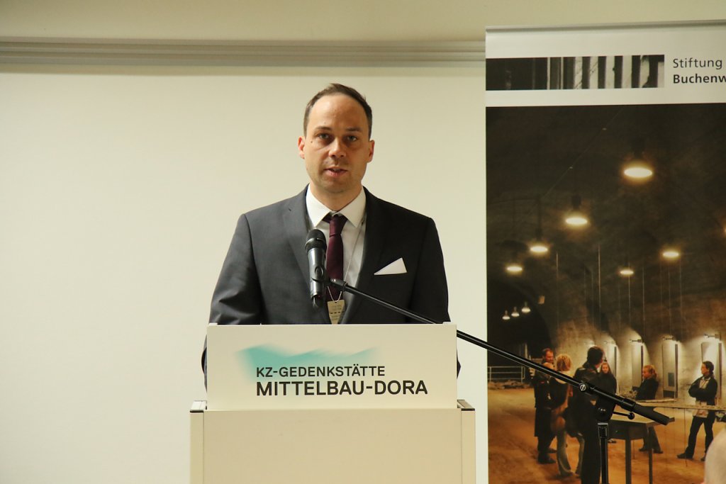 Die Verbrechen der Nazis stehen dem erstarken rechtsextremer Kräfte immer noch im Weg, wird der Philosoph Nikolas Lelle später in seinen Ausführungen zum Gedenken in Dora ausführen. Kein Wunder, das die geistigen Nachkommen lieber wegsehen würden. Lelle spricht von der Idee der Arbeit, dem fleißigen Deutschen und den faulen Anderen, von der Art wie die Nationalsozialisten diese tiefsitzende deutsche Dichtomie für ihre Propaganda nutzten, über Arbeit bis zur Vernichtung für die Gefangenen von Dora und die Arbeit der Vernichtung durch die Lageraufseher und Mitarbeiter.