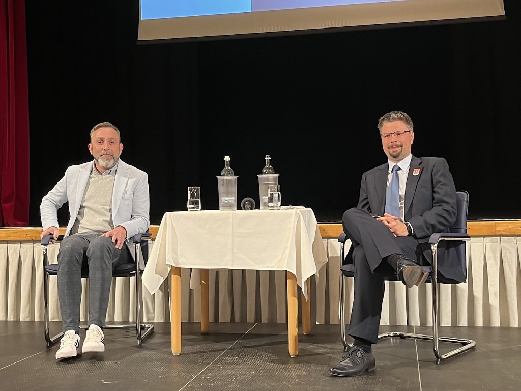 Anspannung vor dem Duell: Bürgermeister Matthias Reinz (l.) und Herausforderer Patrick Kosiol (Foto: oas)
