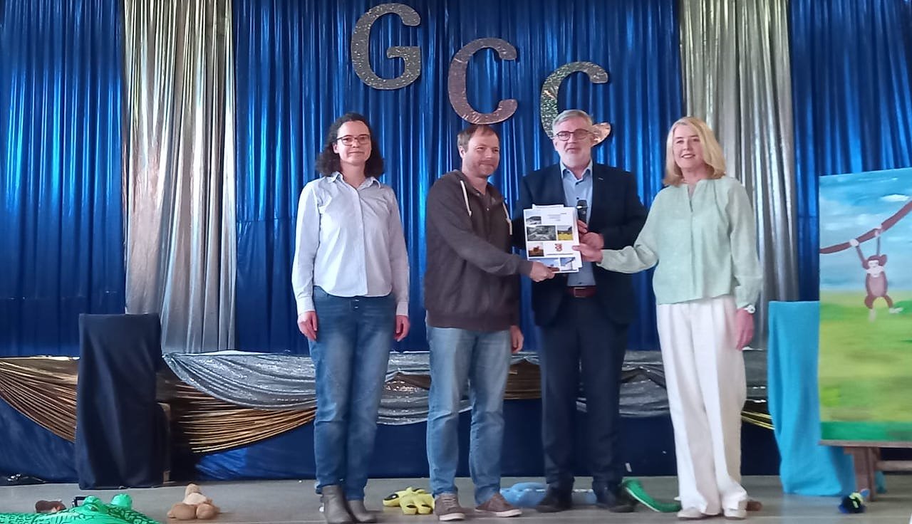 In diesem Jahr konnten wir Vertreter des Landratsamtes Nordhausen begrüßen, welche der Kita einen Fördermittelbescheid von 20 000,00€ überreichten. Herr Nüßle, der 1. Beigeordnete übergab mit Frau Wolf aus dem Team der integrierten Sozialplanung den Bescheid, welcher für die Ausgestaltung des ThEKiZ der Einrichtung bestimmt ist. Seit mehreren Jahren wird die Kita mit der Förderung aus dem LSZ- Programm bedacht, da sie eine Einrichtung mit einer ausgeprägten Familien- und Sozialraumorientierung ist. Das integrierte Eltern Kind Zentrum lebt durch verschiedene Veranstaltung, dem guten Netzwerk zu Vereinen und Institutionen im Landkreis, sowie den internen Beratungsmöglichkeiten.