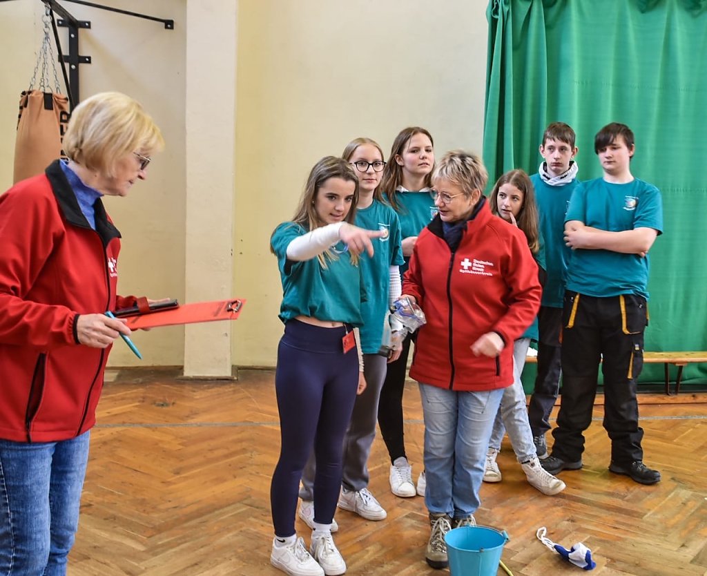 Hier mussten die Teilnehmer zwei Erste Hilfe Situationen mit realistisch geschminkten Darstellern bewältigen. So musste sich zum Beispiel um einen Rollstuhlfahrer kümmern, der mit seinem Rollstuhl gestürzt war. Weiter Stationen waren eine Erste Hilfe Theorie Station, die als Wer wird Millionär gespielt wurde, eine Erste Hilfe Einzelpraxis und eine Sport & Spiel Station die Geschicklichkeit, Bewegung und Erste Hilfe kombinierte.