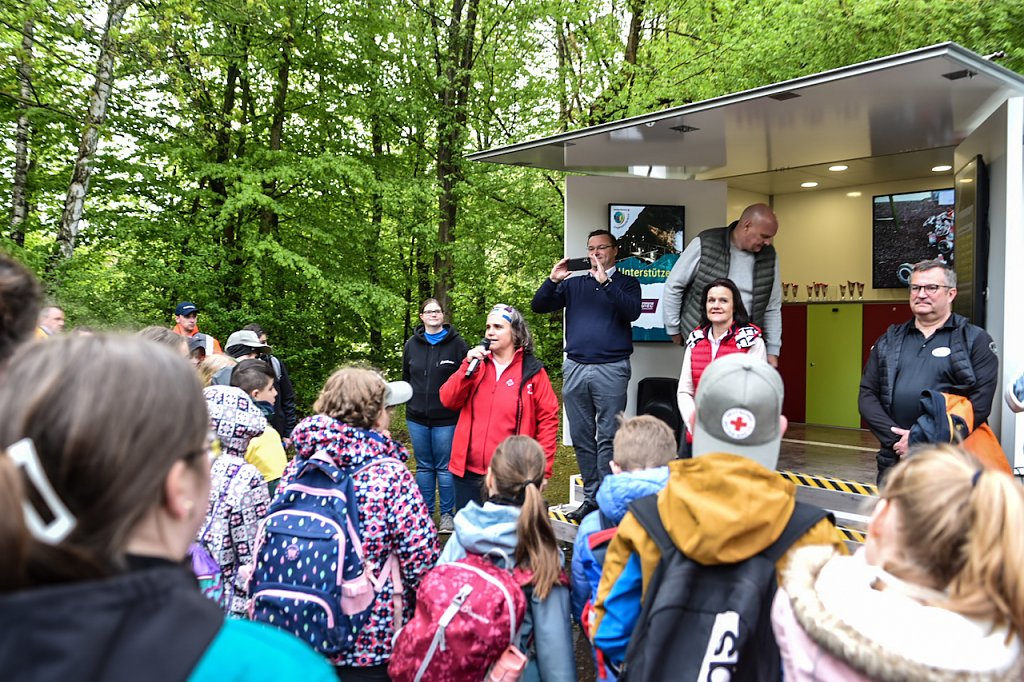 Der Tag begann etwas hektisch. Aufgrund des nicht enden wollenden Regens, entschlossen sich die Organisatoren die fünf geplanten Stationen in die Schule zu verlegen. Da alle Pläne fertig waren, ein Kraftakt für alle Teilnehmer und Unterstützer.