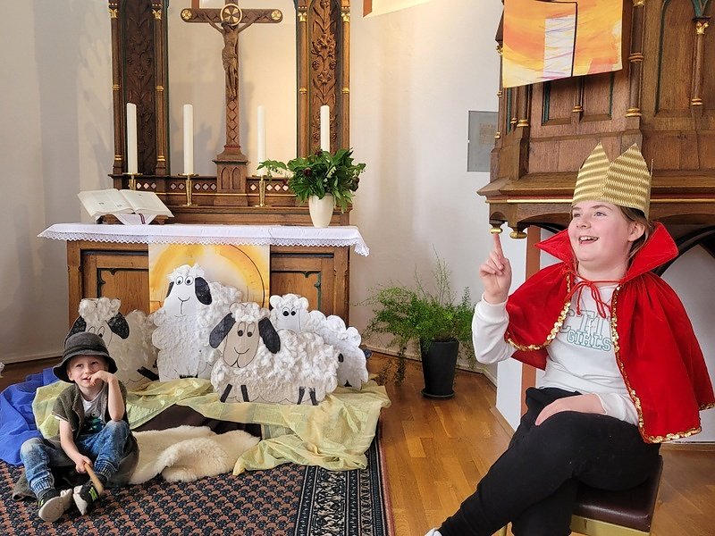 Hierfür überlegten die Kinder gemeinsam mit den Mitarbeiterinnen Fürbitten, übten die erlernten Lieder mit Instrumenten und auch ein kleines Anspiel zu David gegen Goliath als Klanggeschichte. Die Gemeinde erwartete ein lebendiger Sonntagsgottesdienst. Entsprechend viel gab es beim anschließenden Kirchenkaffee zu erzählen.