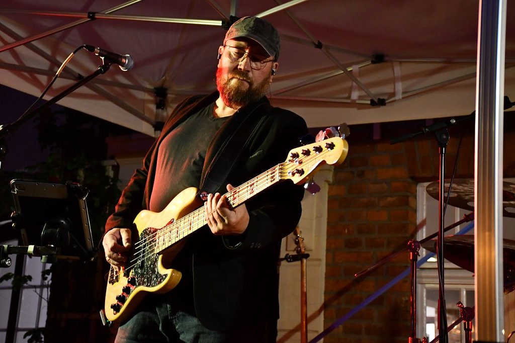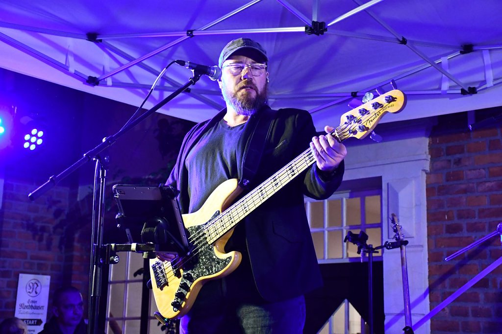 Thomas Müller, Leiter der Traditionsbrennerei, begrüßte die Gäste und freute sich auf einen schönen Abend mit der Nachwuchs-Band aus Bleicherode, wie er die fünf Jungs liebevoll nannte. Aber auch die Band hatte hier und da immer ein lockeres Späßchen auf Lager. Mit ihrer bunten Mischung aus ihren eigenen Liedern und bekannten Coversongs führte die Band die Gäste durch eine musikalische Zeitreise, in Erinnerung an Zeiten aus dem Musical STARS, Berthold Brecht oder der gesamten Bandgeschichte. Einen Ass im Ärmel hatte Gitarrist Ralf Kirchner. Er präsentiere jüngst erhaltene Fotos der Band aus ihren jüngeren Zeiten, in denen sie noch lange offene Haare, Leopardenmantel und elegante Bühnenoutfits trugen. In der Zwischenzeit haben die Bandmitglieder teilweise gewechselt und die langen Haare sind nicht mehr da.