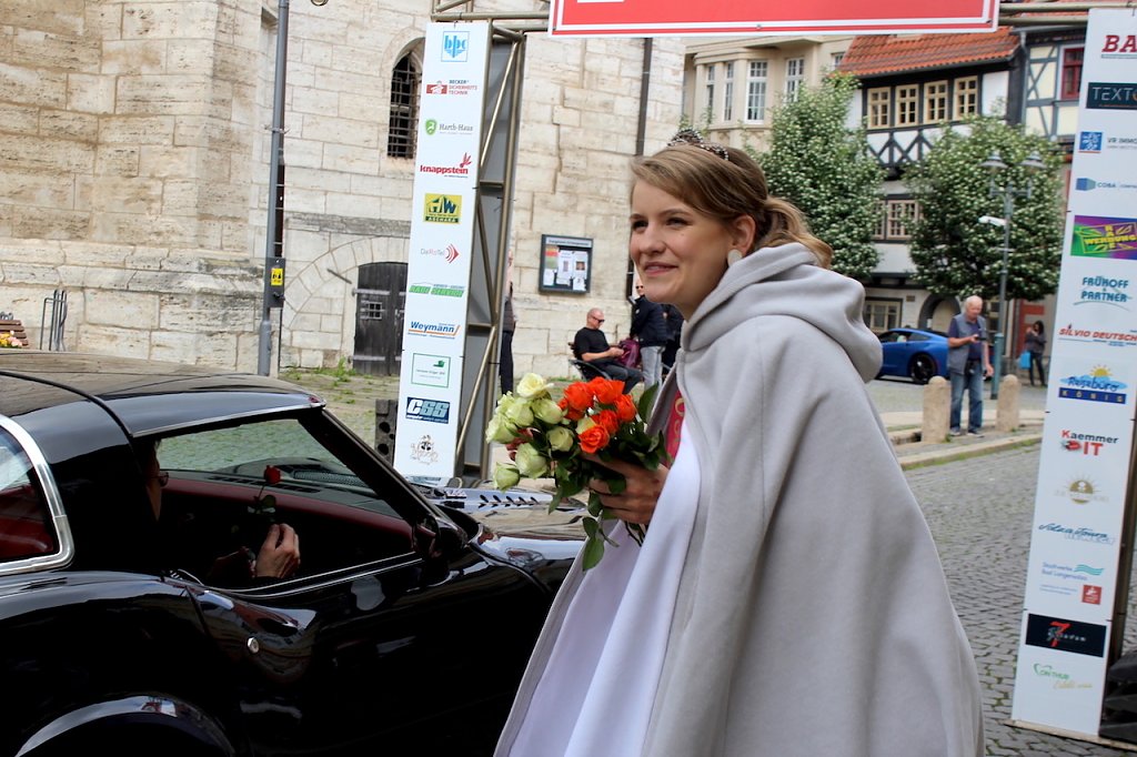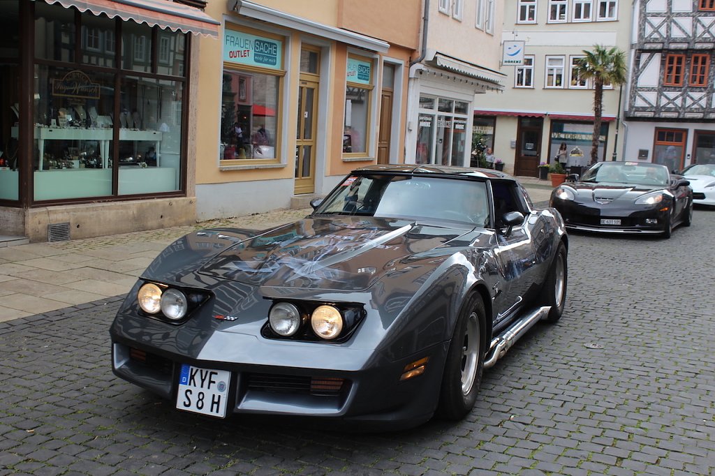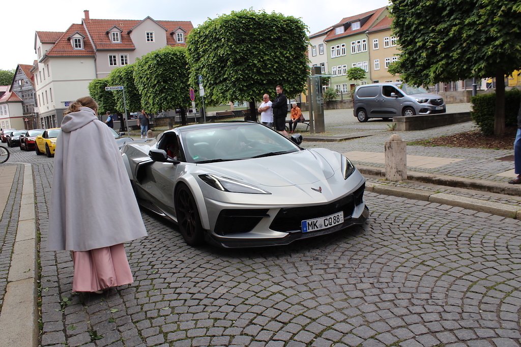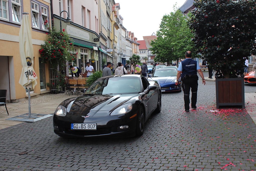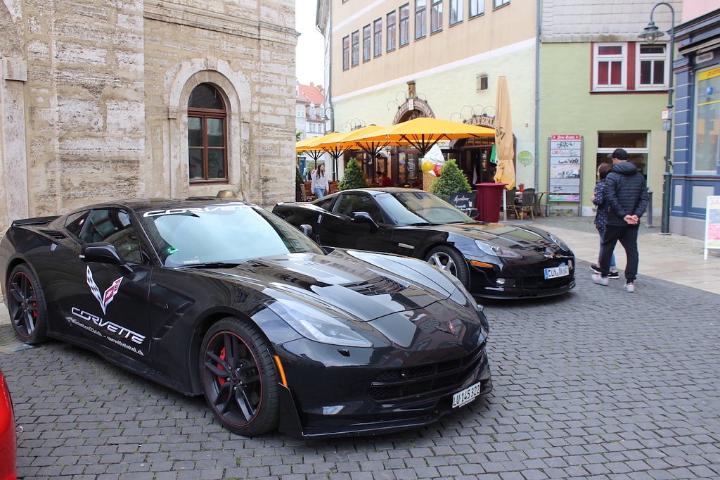 Aus ganz Deutschland, aber auch Dänemark, Luxemburg oder Belgien rollten die Corvettes an und wurden am Zielpunkt von Rosenkönigin Melanie stilvoll mit einem kleinen Rosenstrauß begrüßt. Am späten Nachmittag rollt der Konvoi dann zurück zum Startort Eisenach, wo sie sich am Morgen auf den Weg machten.