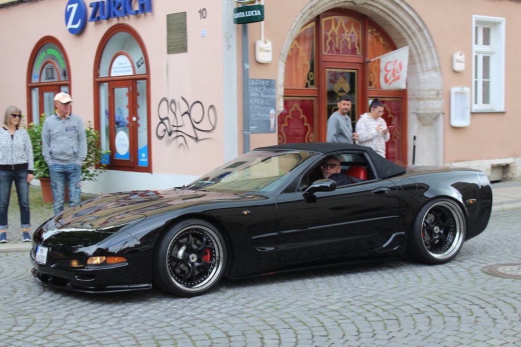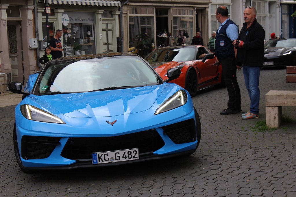Die seit 1953 zum Kultfahrzeug aufgestiegenen Flitzer aus dem Hause Chevrolet des US-Motorgigantenn General Motors haben inzwischen die achte Generation erreicht und viele Liebhaber in ganz Europa. Ein kleiner Teil davon kommt seit 2013 regelmäßig in die Kur- und Rosenstadt, wo sie von den Einwohnern freundlich, anerkennend und auch staunend begrüßt werden. So röhrten die PS-geladenen Kisten auch heute wieder mitten durch die ansonsten autofreie Innenstadt und präsentierten sich den neugierigen Interessenten.