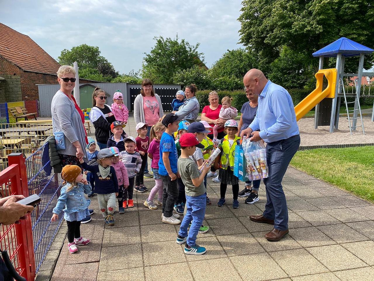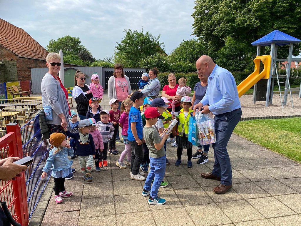 Gemeinsam mit den Einsatzleitungen und den Erzieherinnen wurde im Anschluss ausgewertet, was gut funktioniert hat und was im Fall eines Brandes noch beachtet werden sollte. Für die Kinder gab es nach der Aufregung kleine Geschenke.