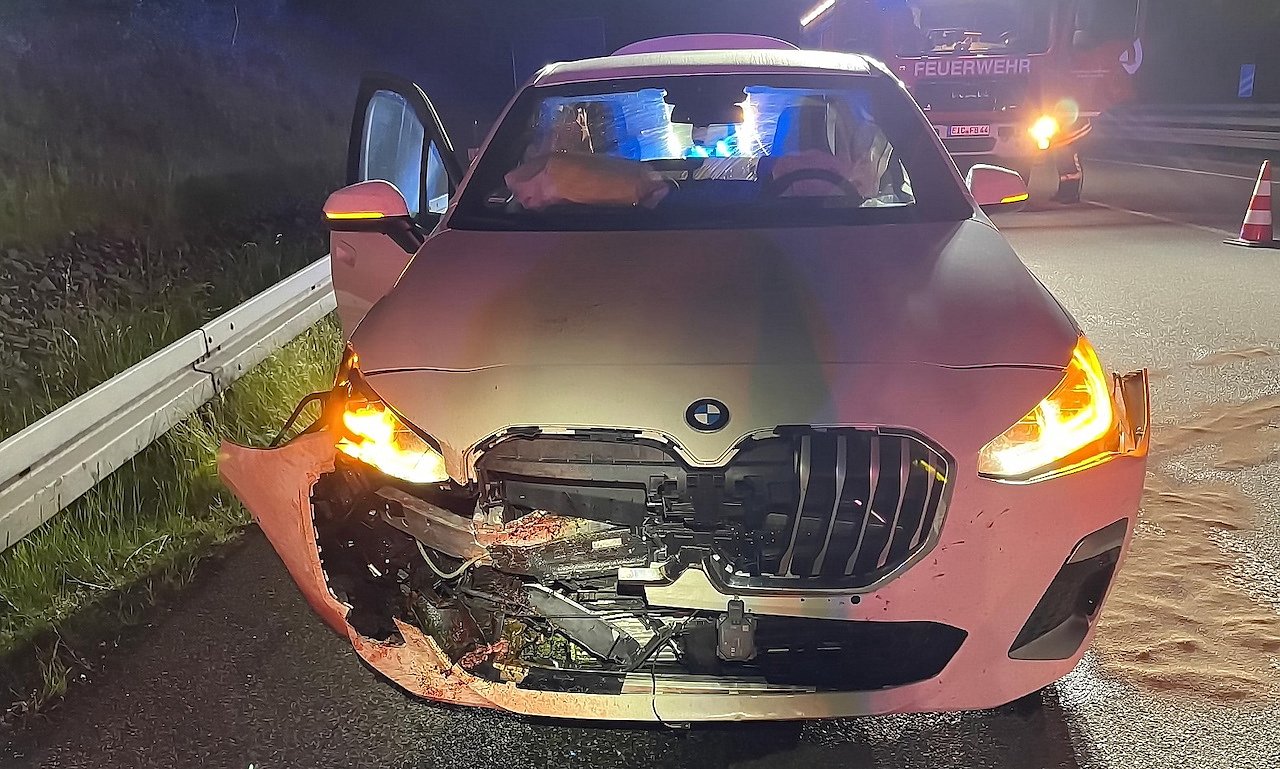 Das Reh überlebte den Zusammenprall nicht. Am BMW entstand erheblicher Sachschaden. Das Fahrzeug war nicht mehr fahrbereit und musste abgeschleppt werden. Der Fahrer wurde bei dem Unfall leicht verletzt und wurde in ein Krankenhaus gebracht.