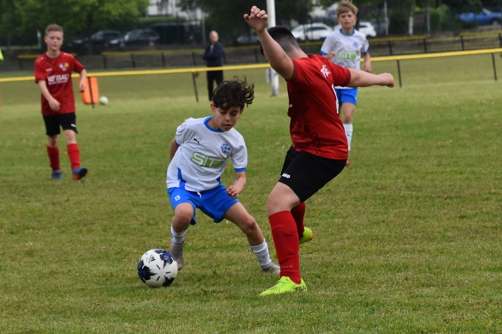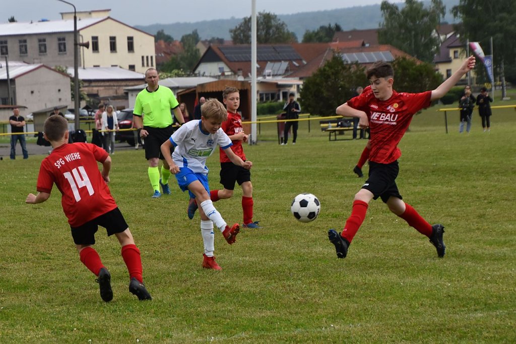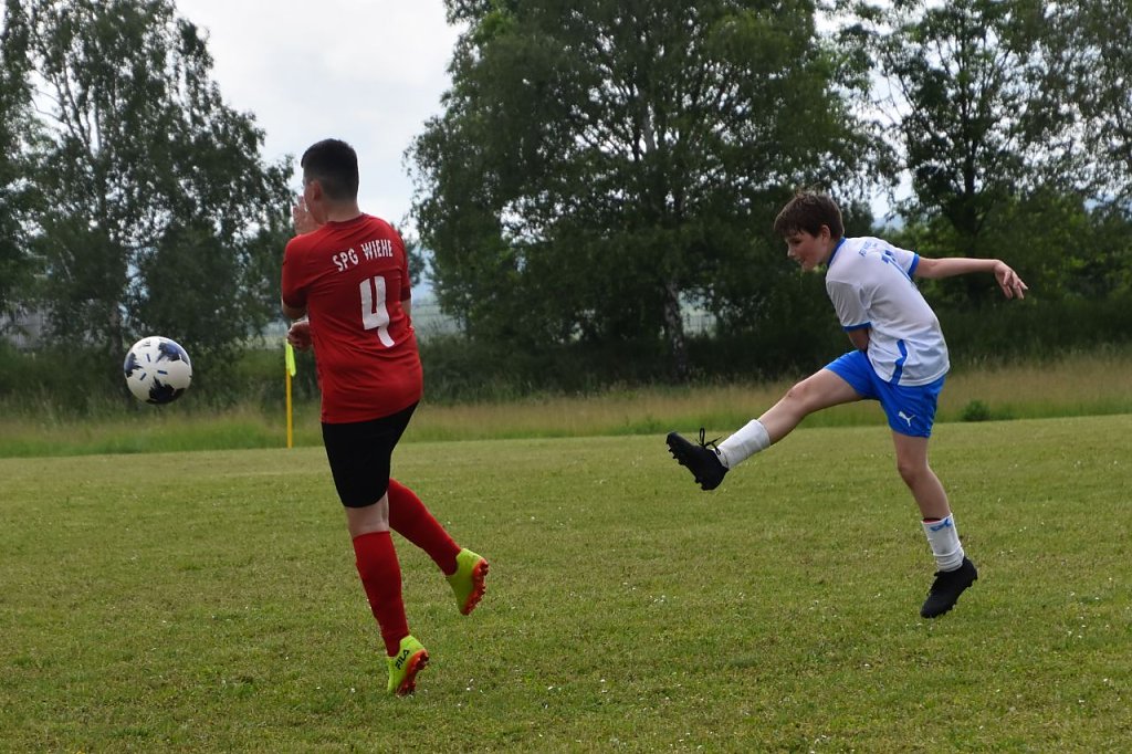 Wenig später mussten beide Torhüter je einen Torschuss parieren. In der 16. Minute strich ein 10 m-Schuss von Liu Hillenhagen knapp am SpG-Tor vorbei. Auf der anderen Seite eine riesige Einschussmöglichkeit für die SpG, doch aus ca. 3m Torentfernung ging das Leder vorbei. Auch Linus Schröter und Ben Schuster verfehlten das Tor der SpG in der 28. Minute. Eine Minute später war Eray Kolukirik mit seinem zweiten Treffer aus 10m Torentfernung erfolgreich und schoss das 0:3 ins linke Eck. Nach einem Freistoß in der 30. Minute, von Ben Schuster auf der linken Seite getreten, erhöhte Yehor Lohvynenko mit einem schönen Kopfballtreffer auf 0:4. Im Gegenzug ging ein Abschluss von Wiehe knapp neben unser Tor.