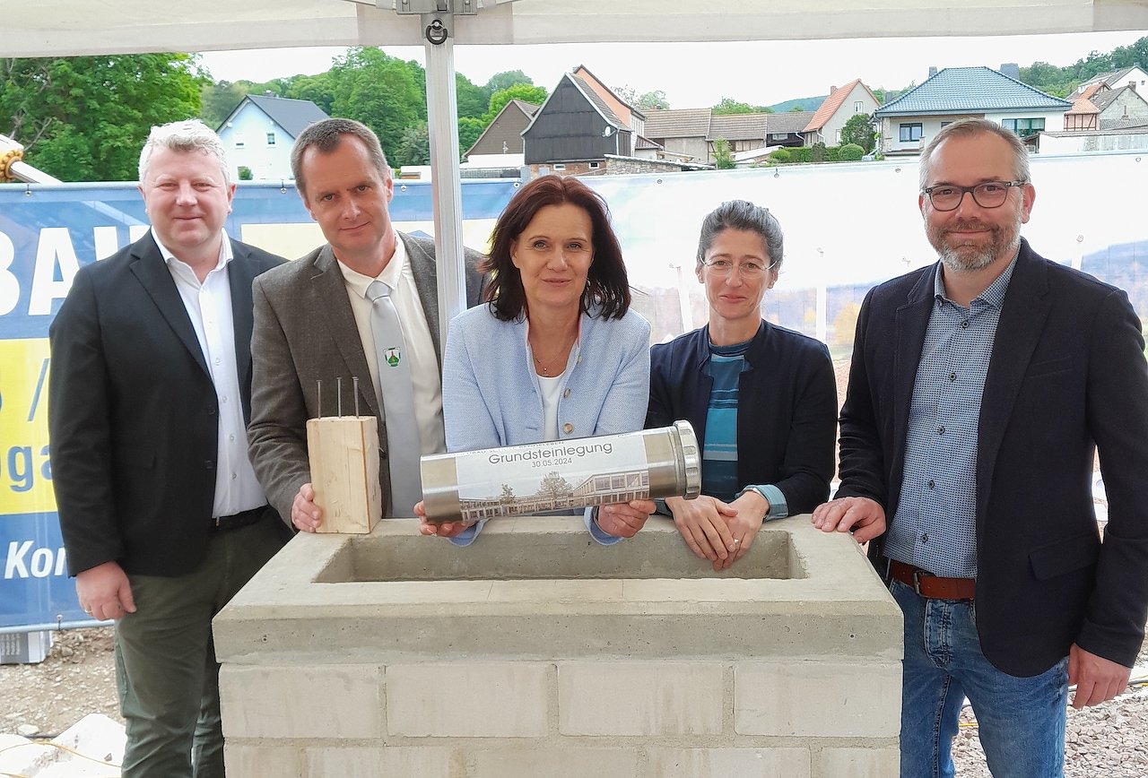 Grundsteinlegung für den Neubau der Grundschule "Kyffhäuserland" in Bendeleben (Foto: LRA Kyffhäuserkreis/ Martin Pollak)
