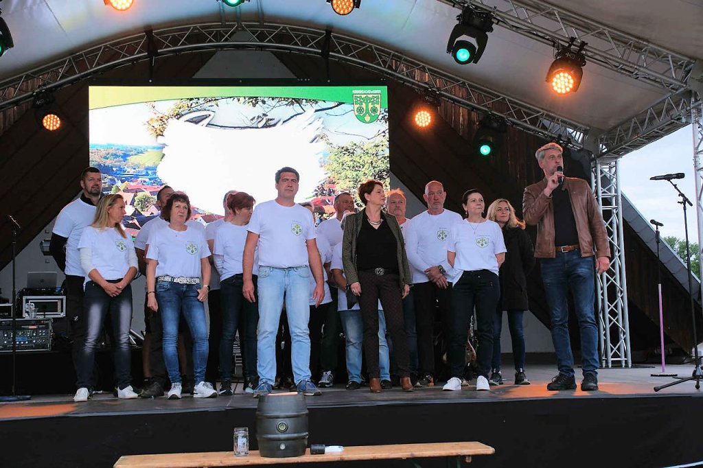 Harztor Bürgermeister Stephan Klante eröffnete das Fest gegen 19.00 Uhr. Danach übergabg die scheidende Ortschaftsbürgermeisterin Katrin Schönemann die Schlüssel symbolisch an ihren Nachfolger.