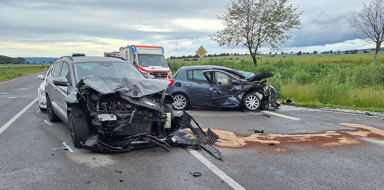 Zu einem Verkehrsunfall kam es am späten Mittwochnachmittag auf der L1172 zwischen Bad Frankenhausen und Artern. Nach ersten Erkenntnissen beabsichtigte eine 72-jährige Renault Fahrerin, welche aus Fahrtrichtung Esperstedt kam, am Abzweig Borxleben abzubiegen. Dabei übersah sie eine im Gegenverkehr befindliche 43-jährige Skoda Fahrerin. Es kam zu einer heftigen Kollision im Kreuzungsbereich...